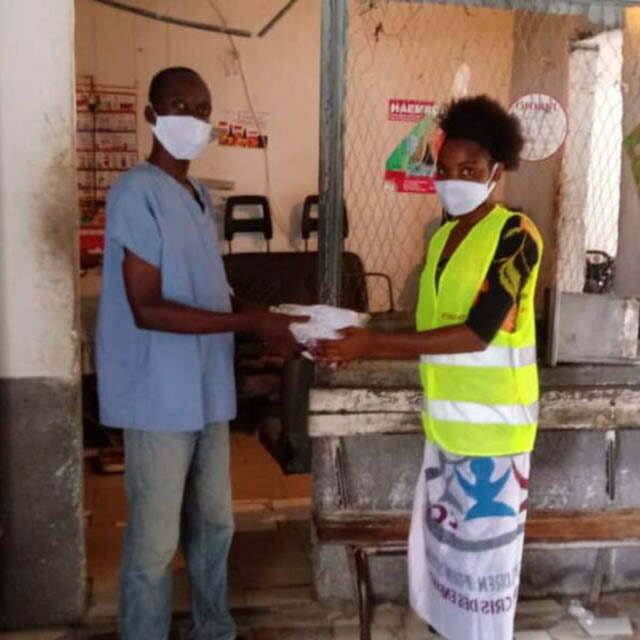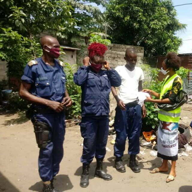 – A distribuição de materiais de gestos de barreira que são máscaras nasais, recipientes de água, sabonete líquido, gel hidroalcoólico e uma fatia de sensibilização através de diferentes espaços mediáticos, nomeadamente rádio, televisão, cartazes e impressão em t-shirts mencionando todos os gestos de barreira para que o vírus não pode se espalhar de forma alarmante.